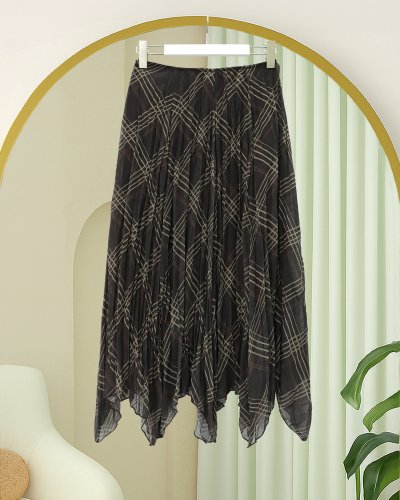 Eteği Asimetrik Kesim Astarlı Şifon Etek Kahve