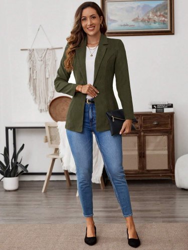 • Kadın uzun kollu yakalı tek düğmeli süet ceket