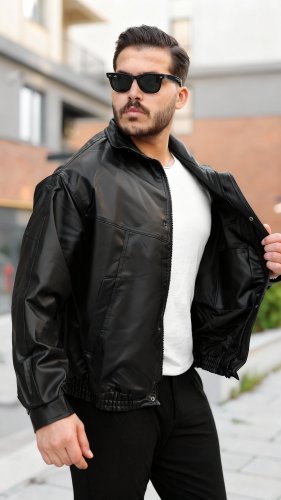 • Erkek içi astarlı oversize deri ceket