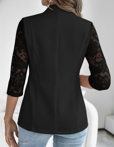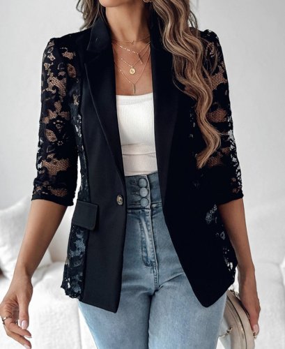 • Kadın uzun kollu truvakar kol önden düğmeli cepli dantelli atlas ceket