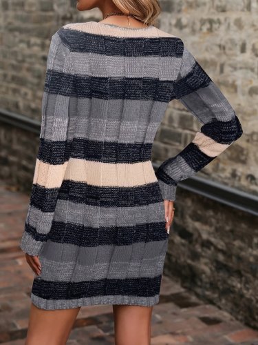 • Kadın uzun kollu v yakalı çizgili çok renkli triko mini elbise