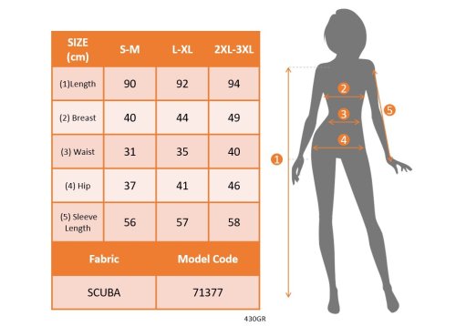 • Scuba Dalgıç: Vücudu saran, esnek yapıda bir kumaştır. Esneklik özelliği dayanıklı bir yapıya sahip olmasını sağlamaktadır. Sıkı olması ve vücudu sarması nedeniyle, bir beden ince gösterir.