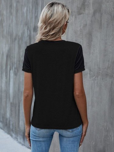 Kadın kısa kollu yuvarlak yaka ön dantel detaylı viskon bluz